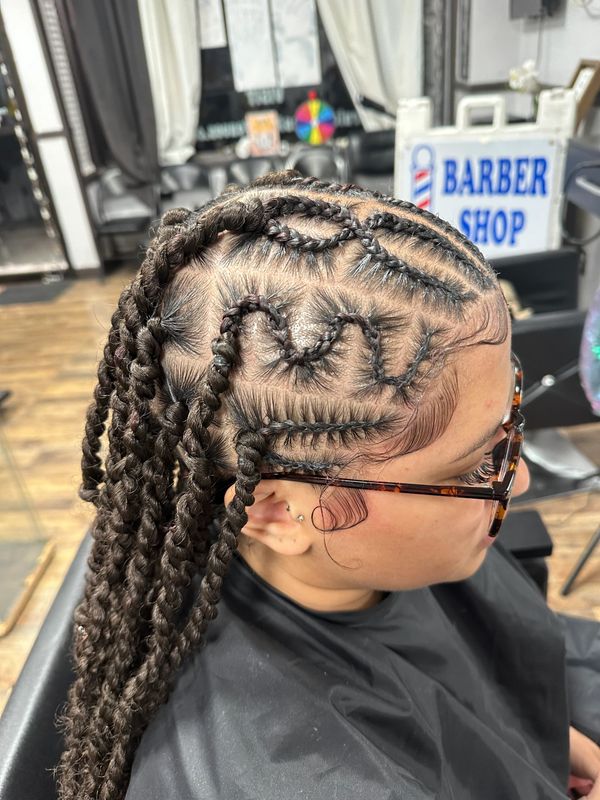 Conveniently designed as a one-stop shop, we specialize in a wide range of services, including men’s, women’s, and kids’ haircuts, braid styles of all kinds, loc maintenance,loc extensions,instant locs,crochet locs,quick weaves,knotless braids,boho,passion twists, two strand twists,feed in braids,designs, weaves,and so much more.